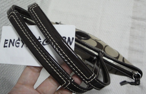 7. COACH - 17439 Signature Stripe Cross Body Bag สี กากี/น้ำตาลมะฮอกกานี (Khaki/Mahogany)ขนาด11*7*4นิ้ว กระเป๋ารุ่นนี้เป็นที่รู้จักกันดีไม่ต้องบรรยายสรรพคุณ ใช้ได้ 2 แบบ ทั้งถือ/คล้องแขน หรือจะสะพาย (มีสายยาวมาด้วย) อุปกรณ์มีน้องเป๋า/Care Cardและ Plastic Bag จาก Coach ราคา 4,490 บาท ** SOLD **
