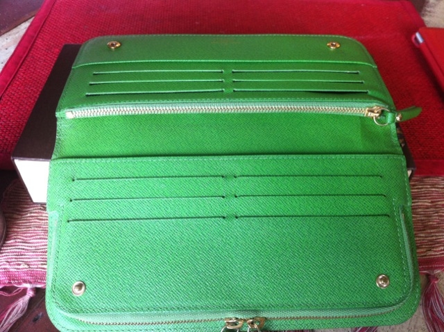 ใบนี้สภาพใช้งาน ให้90%ค่ะ ภายนอกสวยงาม ลายไม่ลอก ขอบที่ยาแนวไม่ถลอกไม่ลอก ด้านในไม่มีลอก เหนียว สีเขียวสดใสชัดเจน รางซิปสีทองไม่ลอกยังทองอยู่จ๊ะ ช่องใส่การ์ดไม่เผยอออก ยังเรียบแน่นอยู่