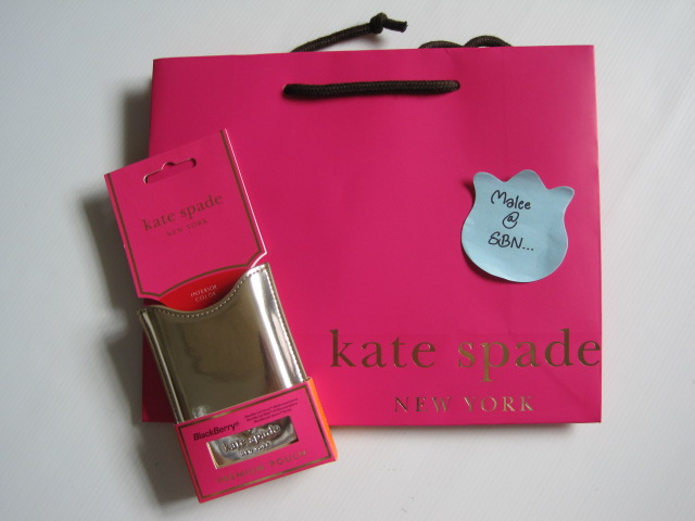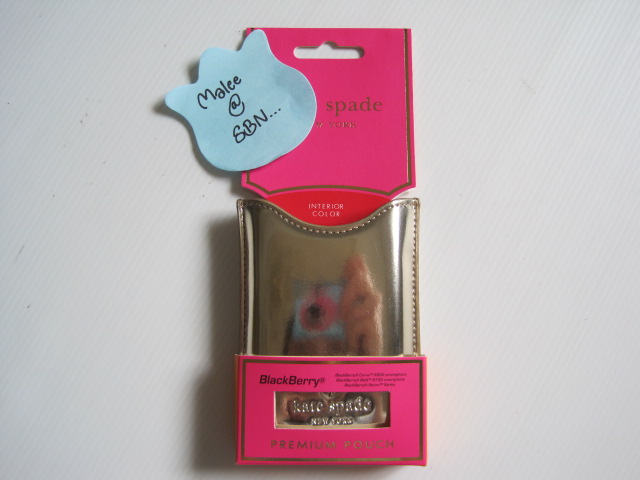 [size=+3]NEW!! KATE SPADE BLACKBERRY POUCH ของใหม่ค่ะ สามารถใช้ได้กับ Blackberry รุ่น Bold 9700 ,Storm Series , Curve 8500 ด้านในสีส้ม ด้านนอกสีทองอ่อน พอสอดเครื่องลงไปในซองเครื่องจะดับเองค่ะ มีพร้อมห่อสวยงามจาก Kate Spade ขาย 1,200