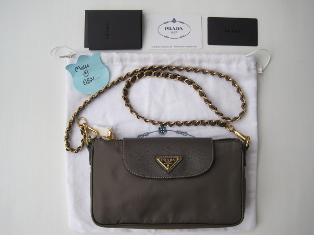 [size=+3]New!! PRADA ON CHAIN TESSUTO SAFFIAN ของใหม่ ขนาด 9"x5"x2" โซ่ยาว 37" สีเทา ขนาดเล็กกระทัดรัดค่ะ ใส่ของได้บ้างค่ะ เหมาะกับวันสบายๆ ช็อปปิ้ง น่ารักค่ะ สามารถสะพายข้างได้ หรือ สะพายแบบcrossbodyก็ได้ค่ะ มีพร้อม ถุงผ้า การ์ด care card ขาย 17,000>>>>[size=+3]Sale 15,500