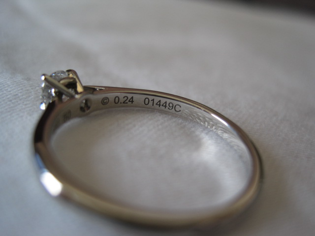 [size=+3]Tiffany & Co. Diamond Ring 0.25 ct. Pt 950 Size 49 ( E color ) Round Brilliant Cutting สภาพสวยกิ๊ก ขาวสวยปิ๊งมากค่ะ วงนี้ไม่มีใบเซอร์นะคะ แต่แท้แน่นอนค่ะ มีพร้อมกล่อง ขาย46,000>>>>[size=+3]Sale44,,000