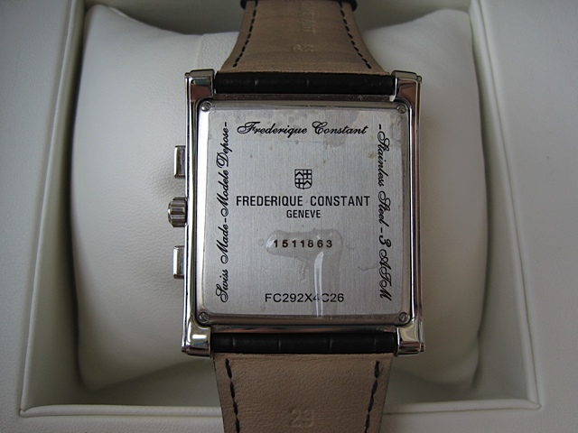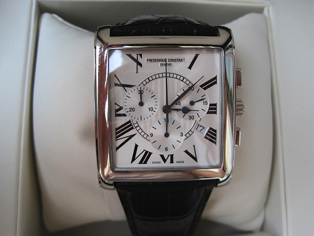 [size=+3]USED FREDERIQUE CONSTANT GENEVE PERSUATION GENTS สภาพสวยและค่อนข้างใหม่ค่ะ Men Size หนังจระเข้ดำ Movement: Quartz Chronograph Crystal: Anti reflective Sapphire Water Resistant: 60 meters Case Diameter: 46 x 38 mm พร้อมบอกวันที่ หญิงหรือชายก็ใส่ได้ค่ะ แต่อาจจะเหมาะกับคุณผู้ชายมากกว่า หน้าปัดใหญ่มองง่ายค่ะ อุปกรณ์ครบ พร้อม กล่องนอก กล่องใน Certificate , Instruction Book ขาย 31,000