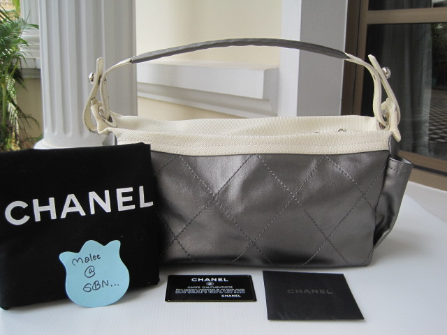 [size=+3]USED CHANEL MESSENGER BAG SILVER สภาพดีค่ะ ขนาด 13"X6"X5.5" สายยาว 17" สะพายขึ้นไหล่ได้สบายค่ะ น้ำหนักเบาสุดๆ เป็นกระเป๋าเคลือบ ใช้งานง่ายจุของได้มากมายเลยค่ะ มีPocket เล็ก2ด้าน มีตำหนินิดหน่อยมีรอยฉีกด้านริมของช่องใส่กระเป๋าเล็กด้านข้าง แต่ไม่มีผลกับการใช้งานใดๆค่ะ เพราะไม่ได้ขาดถึงผ้าด้านใน มุมก้นไม่มีรอยถลอกใดๆ ข้างในสะอาดค่ะ สภาพยังสวยค่ะ มีพร้อม การ์ด care book ถุงผ้า ขาย 14,000