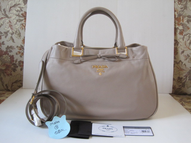 [size=+3]New!!Prada Soft calf Shopping สี Pomice ขนาด L 12.60 x H 9.06 x D 5.91 Inches ของใหม่ และรุ่นใหม่ล่าสุด สีเบจสวย หนังลูกวัวนุ่มมากเลยค่ะ สะพายได้ถือได้ ช่องใส่ของได้3ช่อง และช่องซิปด้านในอีก1ช่อง ช่องใส่มือถือ เป็นกระเป๋าที่สวยหรูดูดีและใช้ได้ทุกวันอีกด้วยค่ะ ที่สำคัญไม่โหล ไม่ต้องเดินชนกัน มีพร้อม สายสะพายยาว การ์ด ถุงผ้า คู่มือ กุญแจ+ลูกกุญแจ ราคาในช็อปเกือบ7หมื่น ขาย 59,000