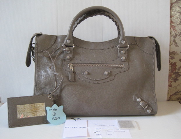 [size=+3]New!! BALENCIAGA GIANT CITY ARGENT HAMILTON Gris Poivre ของใหม่ค่ะ Goat Skin หนังสีน้ำตาลตัดกับอะไหล่เงิน สวยมากๆเลยค่ะ เป็นรุ่นหมุดใหม่ด้วย น้ำหนักเบา และหนังสวยทั้งใบ ไม่เฝดง่าย มีพร้อม ถุงผ้า กระดาษ สายยาว กระจก ขาย 57,500
