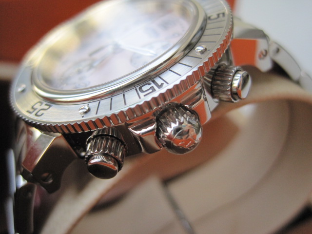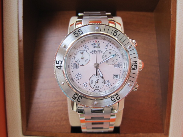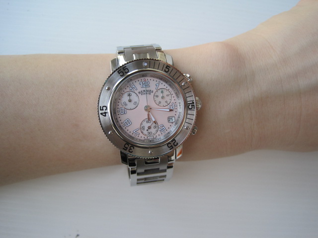 [size=+3]New!! HERMES CLIPPER DIVER CHRONOGRAPH PINK 35m ของใหม่ค่ะ หน้ามุกชมพูอ่อน รุ่นนี้เท่ห์และสวยมากๆและหายากมากนะคะ หน้าปัดขนาดกลางไม่เล็กเหมือนรุ่นLadyทั่วไปค่ะ ยังมีsealติดอยู่ค่ะ มีพร้อม Garantee Book , Instruction Book กล่อง ขาย 110,000