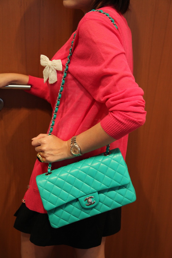 Chanel Spring Summer 2012 Medium size 10" ใบนี้เป็น collection ใหม่ล่าสุดค่ะ เป็นหนัง Lamb ที่พัฒนาแล้วรักษาง่ายกว่าเดิม มีสีชมพู หวานมากๆค่ะ และสีเขียว Aqua ไม่ต้องบรรยายว่าน่ารักขนาดไหน หายากสุดๆค่ะ ราคา 134,000 บาท