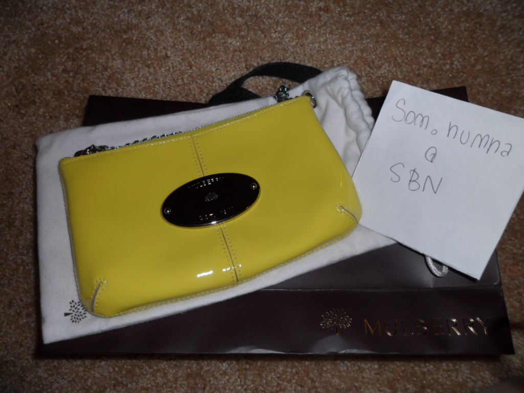 3. NEW Mulberry in lemon patent… สีไม่ซ้ำใครด้วยกระเป๋าสีมะนาวจาก mulberry คะ ใช้ได้ในหลายโอกาสเลยคะ จะเป็นออกงานหรือจะเป็นไปเที่ยวก็ได้ ขนาดพอดีใส่ของจำเป็นเลยคะ กระเป๋าตัง มือถือกับเครื่องสำอางนิดนึง ^^ 5500 >> 4900 >>>> 3900 net