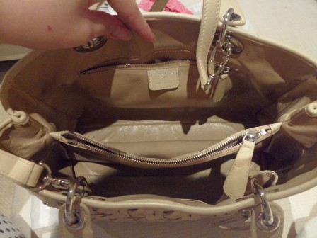 1. NEW LADY DIOR Avenue Woven Lamb Skin.. ตัวนี้ทำจากหนังแกะคะ นุ่มมากๆๆ สีครีมสวยหวานดูหรูน่าใช้มากๆคะ เหมาะกับคนที่ต้องการกระเป๋า Dior ที่ไม่ค่อยซ้ำใคร และไม่ทำกระเป๋าตังเป็นรอยตอนใส่เข้าใส่ออกคะเพราะพื้นที่ใช้สอยนั้นกว้างมาก เป็นมือหนึ่งคะแต่ที่ตัวกระเป๋าจะมีรอยกาวนิดนึง ใบจริงเห็นไม่ชัดขนาดนี้นะคะ อันนี้ zoom zoom ให้เห็นกันชัดๆ ต้องสังเกตใกล้ๆถึงจะมองเห็นคะ ไม่ทันสังเกตตอนซื้อ