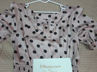 11. Dress Jaspal สีชมพูลายจุดดำ ผ้าซาติน มีโบว์ที่ด้านหลัง สวยเก๋ ใส่แค่ 1 ครั้ง size xs ขาย 700 บาท