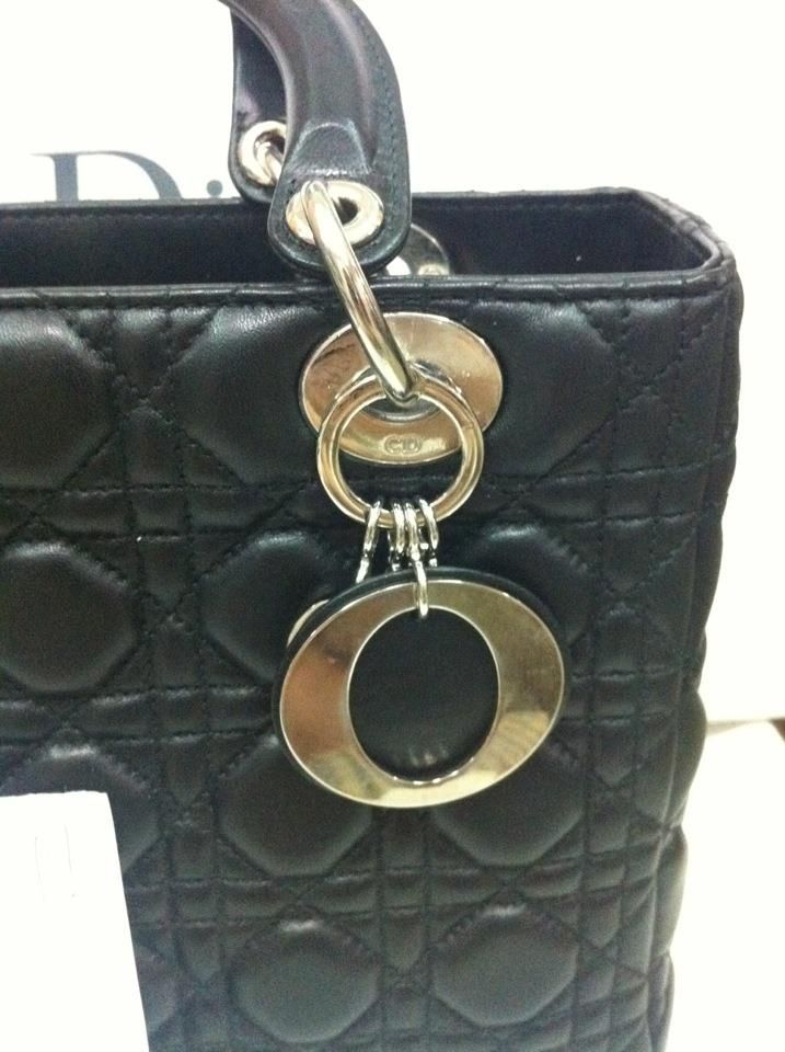 Used Lady Dior 10 Black Lamp Hardware Silver