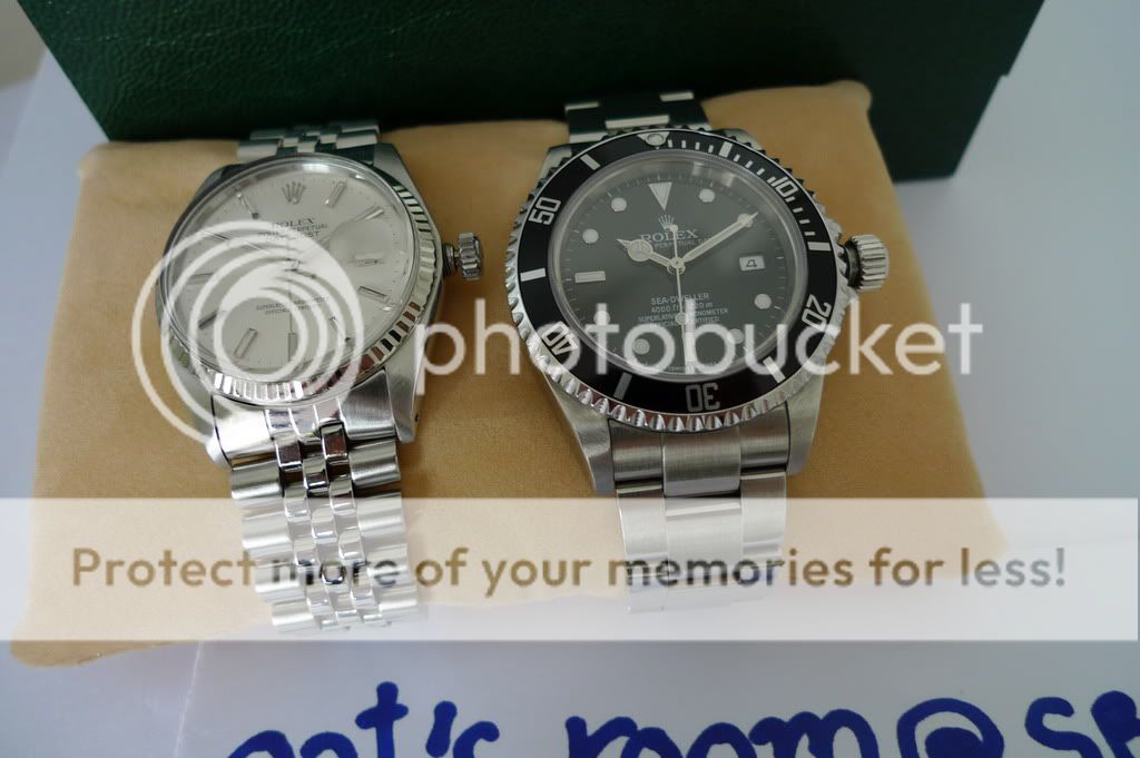 หลังจากลง Rolex เรือนแรกไป หลายคนโทรมาถามว่ามีรุ่นนั้น รุ่นนี้ เผื่อซื้อไปฝากหนุ่มๆ เลยต้องบีบคอ แฟนให้ปล่อยของมาอีก คราวนี้ มาให้เลือก 2 เรือน รุ่นเดียวกัน (ไม่รู้จะซื้อมาทำไม 2 เรือน)