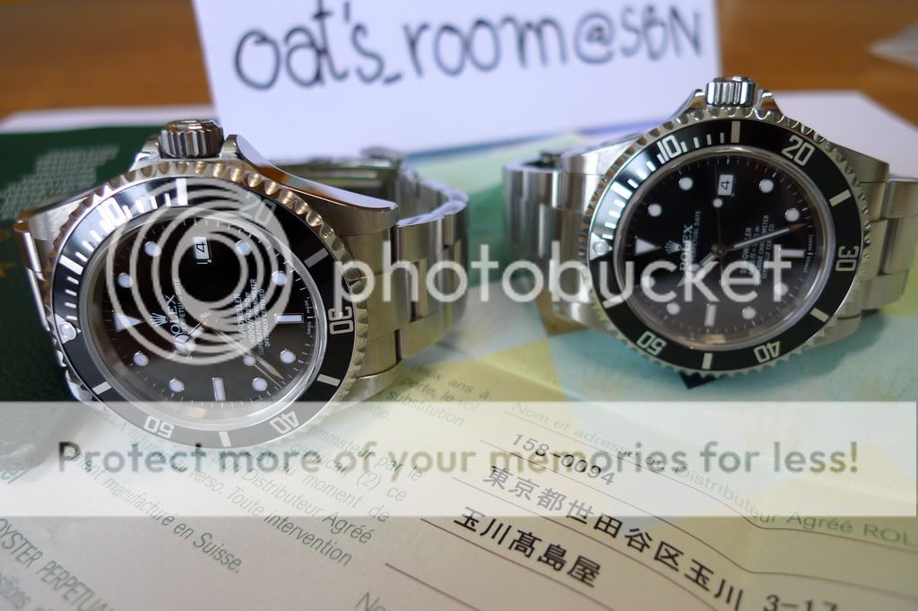 เรือนแรก สังเกตเรือนทางซ้ายคือ Series Z ปี 2006-2007 รุ่นสุดท้ายก่อนเปลี่ยนเป็นสลักด้านใน (Deep Sea ซึ่งหลายๆ คนไม่ชอบรุ่นใหม่เพราะสายและขอบของเม็ดมะยม) ราคา 160,000 บาท ไม่มีกล่องไม่มีใบ
