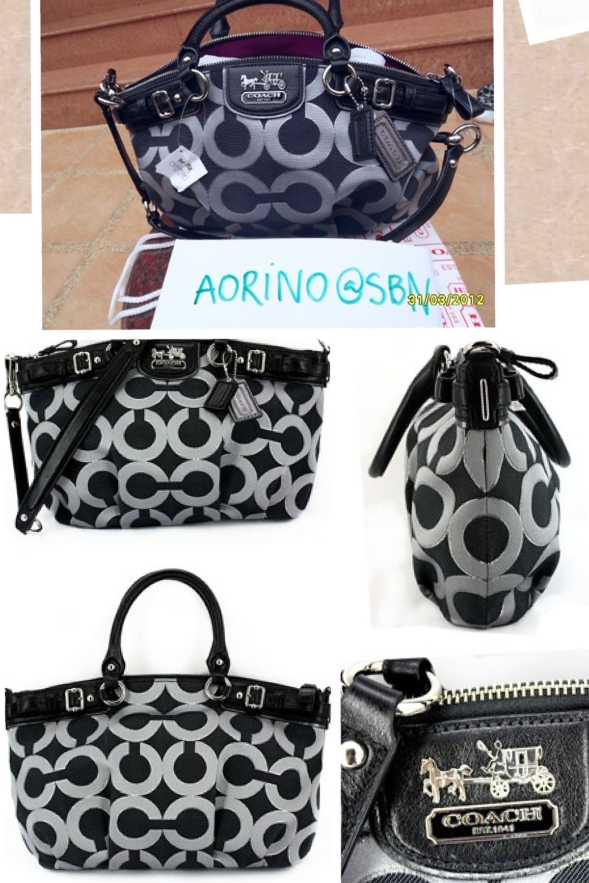 3) Coach Madison Op Art Sateen Sophia Sachel 17693 Black