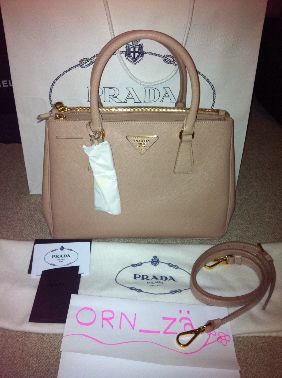 New Prada Saffiano Peony(pink)size30 with strapAll sold ka
