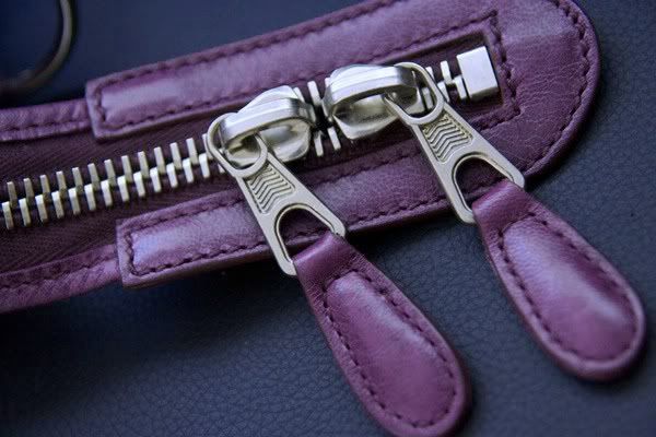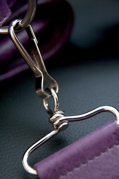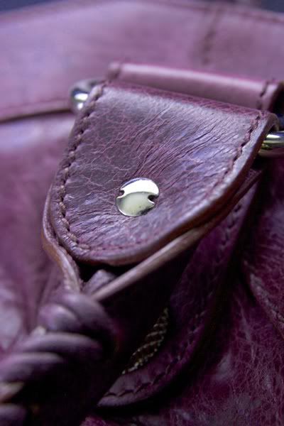 เป็นหมุดเงิน เข้ากับเสื้อผ้าง่าย สีหนังออกม่วงอมแดงนิดๆ (ขึ้นอยู่กับแสงนะครับ) ถ้าจำไม่ผิดจะเป็น 2010 Fall/Winter สี Murier ครับ ปี 2011-2012 ไม่มีสีโทนนี้แล้วนะครับ