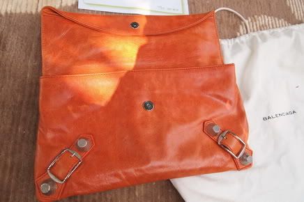 BALENCIAGA ENVELOPE CLUTCH Orange with Giant Silver Hardware