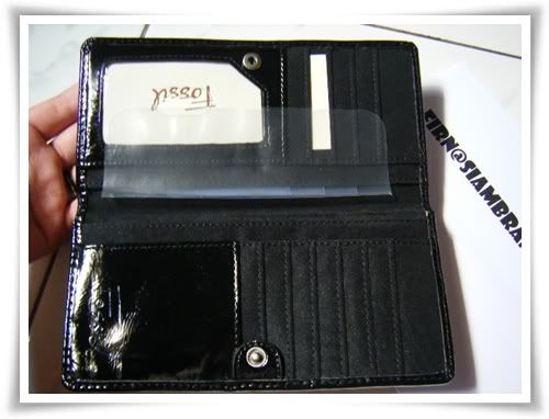 กระเป๋าหนังแก้วเนื้อดี บุด้านในด้วยผ้า เย็บตะเข็บอย่างปราณีตจาก Fossil สีดำ ขนาด 7 x 3.5 นิ้ว