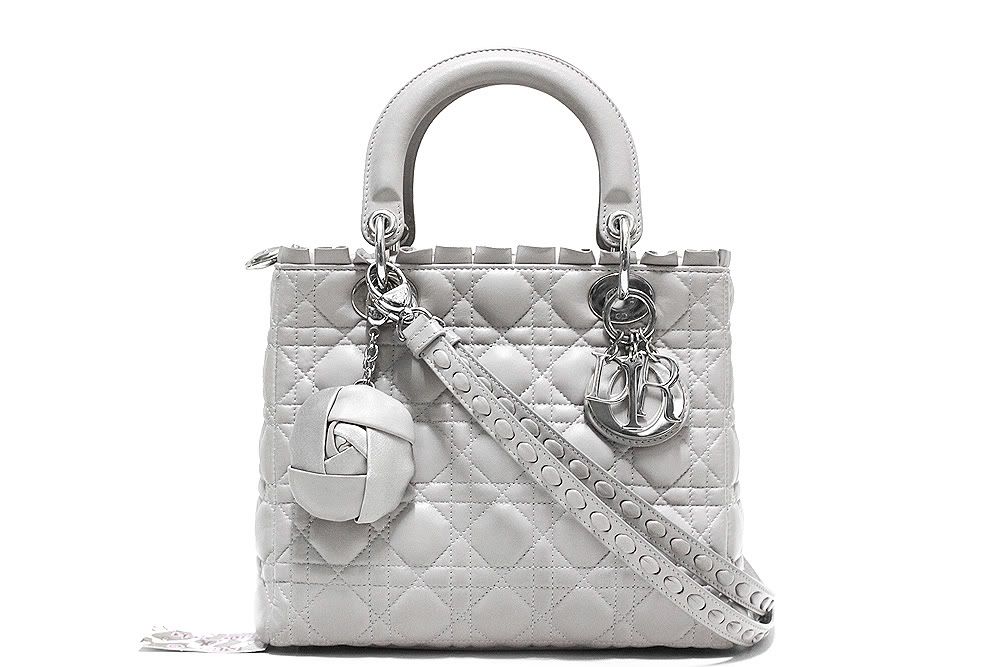 7.Limited Edition Christian DIOR Grey London Lambskin LADY DIOR with Rose Charm