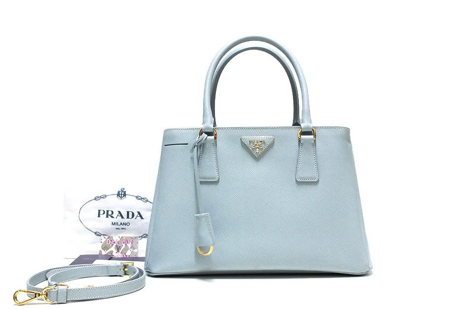 3.Prada Blue LAGO Saffiano Lux Tote 33 with shoulder strap