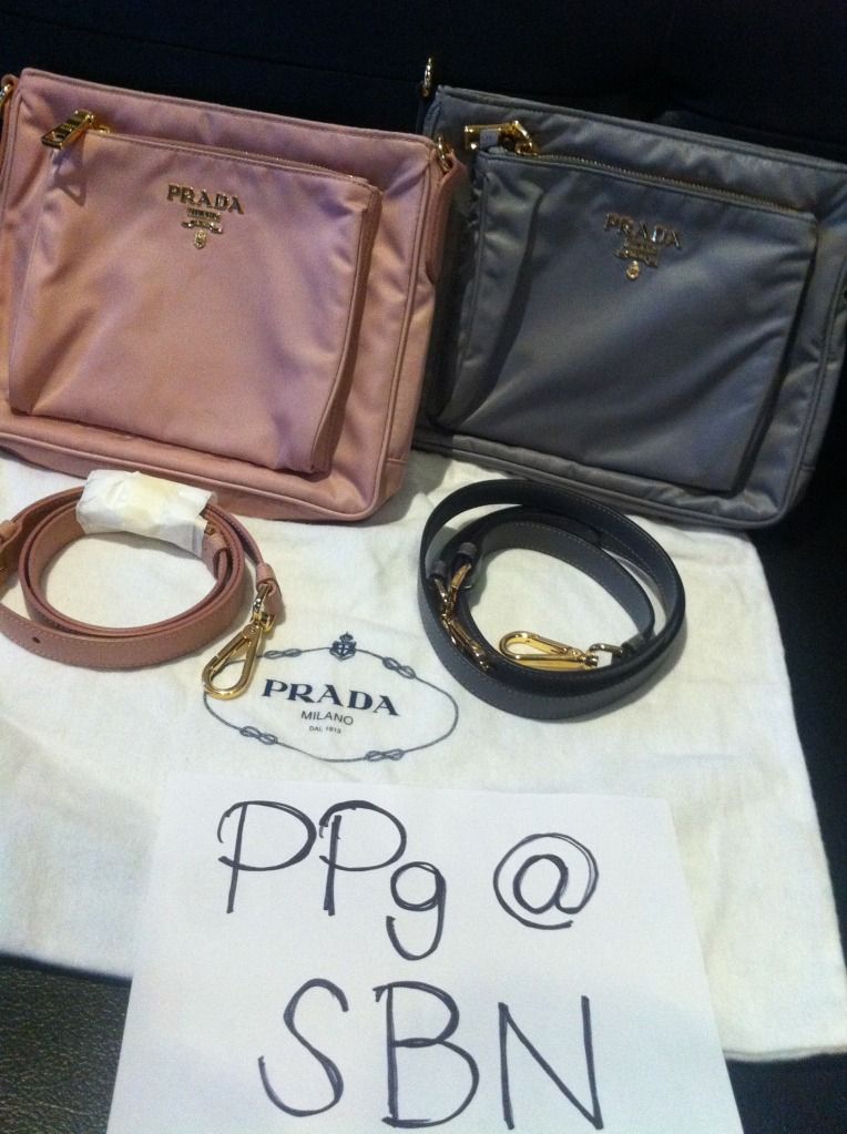 PRADA Messenger bag สีเทาและชมพู ราคา14900 บาท