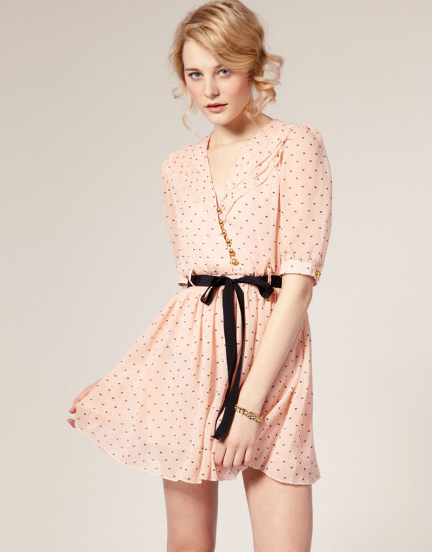 TOPSHOP DRESS UP PEACH SPOT MESH TULLE DRESS