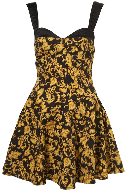 TOPSHOP Skater Belt Dress by Rare (Mustard)TOPSHOP Floral Printed Tea Blouse