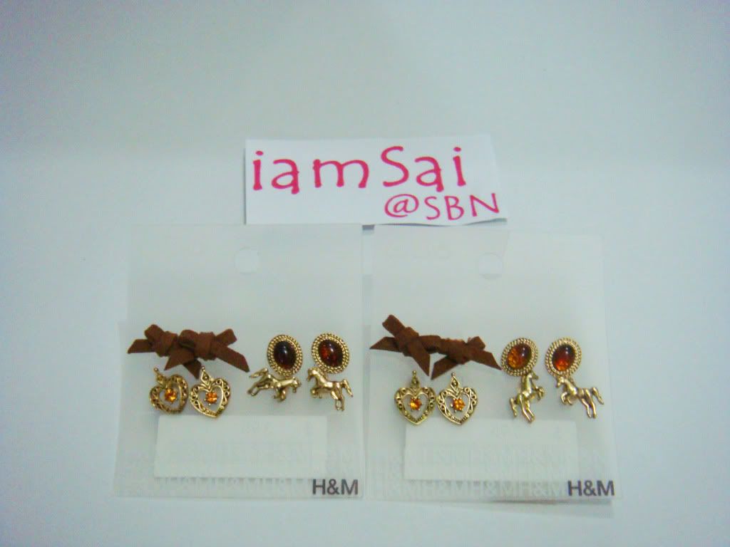 ต่างหู 4in1 ซื้อครั้งเดียวได้ถึง 4 คู่ ลักษณะเป็นแป้น มีลายโบว์สีน้ำตาล,ลายกลม,หัวใจ,ม้า เซทละ 360บาท (เหลือเซทเดียว)