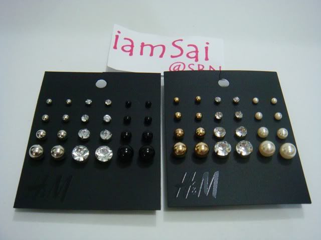 ตุ้มหู แบบเซท 12คู่ ไล่ขนาด มี2 แบบ สีเงิน-ดำ (รูปซ้าย) และสีทอง-มุก(รูปขวา) เซทละ370 บาท