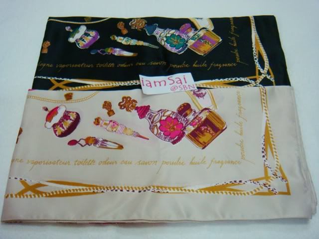 ผ้าพันคอ - คลุมไหล่ สีน้ำดำเข้ม(บน) และสีครีม(ล่าง) ขนาด 90*90 cm. เนื้อผ้านิ่ม ลื่นๆ 100% polyester (made in Italy) ผืนละ 750 บาท