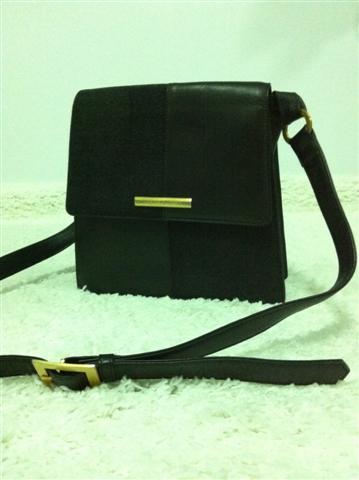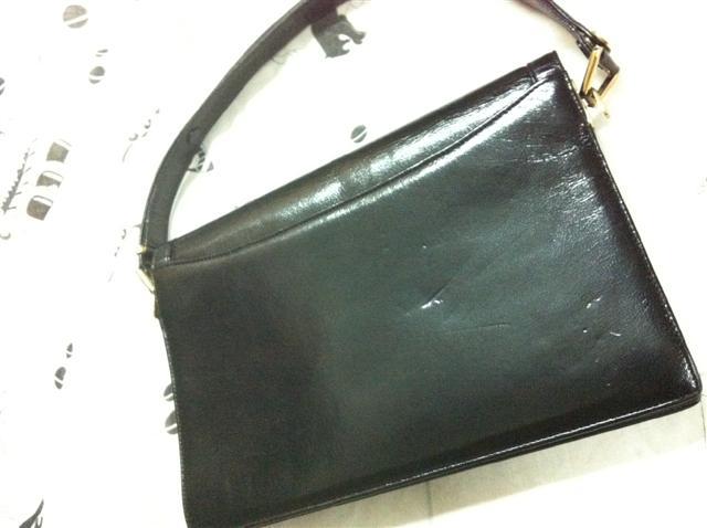 Pierre cardin หนังแท้สีดำ สะพายได้สองแบบ คือสายสั้น กับยาว สภาพใช้งานมาแล้วบ้าง มีมุมด้านซ้ายถลอกเล็กน้อย ด้านหลังกระเป๋ามีรอยเล็บ แต่เวลาสะพายไม่เห็น อะไหล่ทองมีถลอกบ้าง โดยรวมยังสวยอยู่มากค่ะ หนังแท้ส่งต่อเพียง 300 บาทค่ะ
