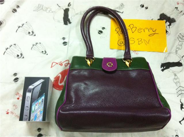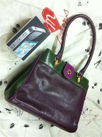 Bettina bag made in italy หน้งแท้ทูโทน เขียว-ม่วง สภาพานางฟ้า หนังนิ่มมือเงามันสวยค่ะ น้ำหนักเบา อะไหล่ทองวิ้ง มีตำหนิที่เดียวคือ ตรวฝาปิดเปื่อนสีชมพูจาง ดูแล้วเหมือนเป็นลวดลาย ไม่น่าเกลียดค่ะ สภาพโดยรวม A จ้า ไซน์กระเป๋า กว้าง 10 นิ้ว สูง 8 นิ้วค่ะ ก้นกระเป๋ากว้าง 3 นิ้วค่ะ ราคา 890 บาท ราคานี้แค่หนังแท้ก็คุ้มแว็วๆๆ (^_^)