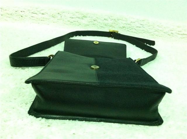 กระเป๋า Flynow vintage ตัวกระเป๋าเป็นหนังแท้ สลับผ้าสีดำ