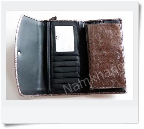 ด้านในเป็นหนังสีดำ มีช่องใส่รูปหรือนามบัตร และยังมีช่องให้ใส่บัตรต่างๆได้อีกกว่า 14 ช่อง กระเป๋าพับสามชั้นตามในรูปเลยค่ะ