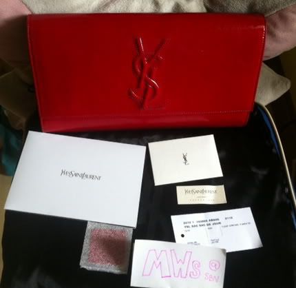 NewLarge YSL CLUTCH IN RED PATENT LEATHER