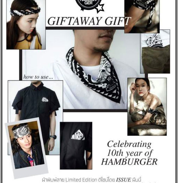 ผ้าพันคอ Issue *Limited Edition* ขนาด 50*50 cm. ทำขายจำนวนจำกัด ฉลองครบรอบ 10 ปีนิตยสาร HAMBURGER ของแท้ 100% ใหม่ 100%