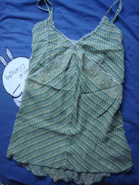USED!! เสื้อสายเดี่ยวชีฟอง สีเขียวอ่อนนน จาก GUESS Size xs