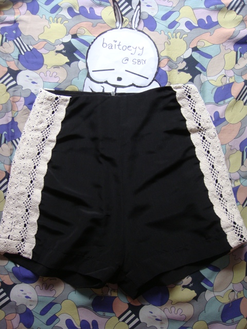USED LIKE NEW /// กางเกงเอวสูง ผ้าไหมญี่ปุ่น สีดำ ตกแต่งด้วยลูกไม้เนื้อหนาด้านข้าง เอว 24-25" จาก define romance ส่งต่อเบาๆๆ 250-พร้อมส่ง