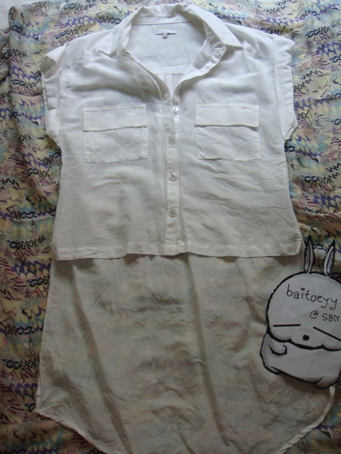 USED ONLY ONE/// เสื้อปกเชิ๊ตสีขาวมุก หน้าสั้นหลังยาว จาก jaspal size xs 450- พร้อมส่งจ๊ะ