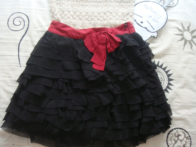 กระโปรงผ้าไหมญี่ปุ่น สีดำ เย็บเป็นชั้นๆๆๆๆ ฟูฟ่องเหมือนเจ้าหญิง คุณชม ใส่ในละครต้มยำลำซิ่งด้วยนะคร๊าาาตัวนี้ จาก Assisi เอว 25" 750- >>600-พร้อมส่ง