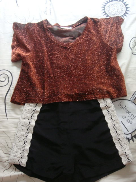 USED LIKE NEW/// เสื้อผ้าดิ้นสีทองน้ำตาลเข้ม คน size or m ใส่ได้ค่ะ จาก Assisi ส่งต่อ 300- พร้อมส่ง>>> ใส่กันชิลๆ วิ้งๆ ไม่ร้อน