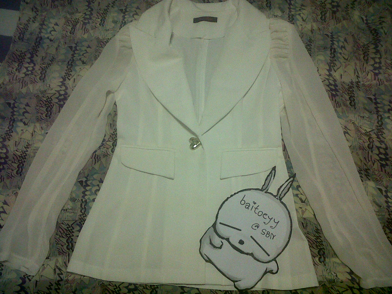 USED++Blazer สีขาวมุข งานเกาหลี สภาพดี แขนทำจากผ้าชิปฟอน free size ซื้อมา 1,xxx - ส่งต่อ 500- พร้อมส่ง EMS