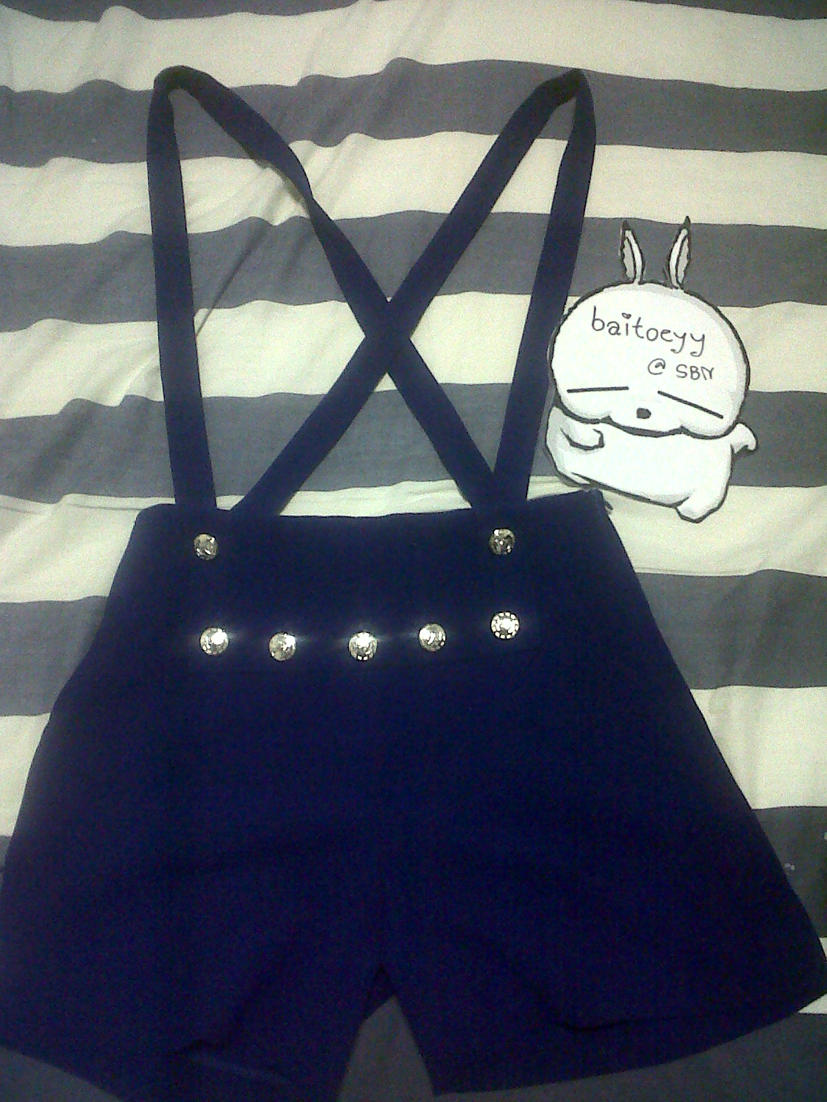 NEW!! เอี๊ยม ขาสั้นเอวสูง จาก Assisi เอว 25" สีน้ำเงิน ผ้าชีฟองเนื้อทราย ผ้าดีมาก สายปรับได้ค่ะ ส่งต่อ 500- พร้อมส่ง