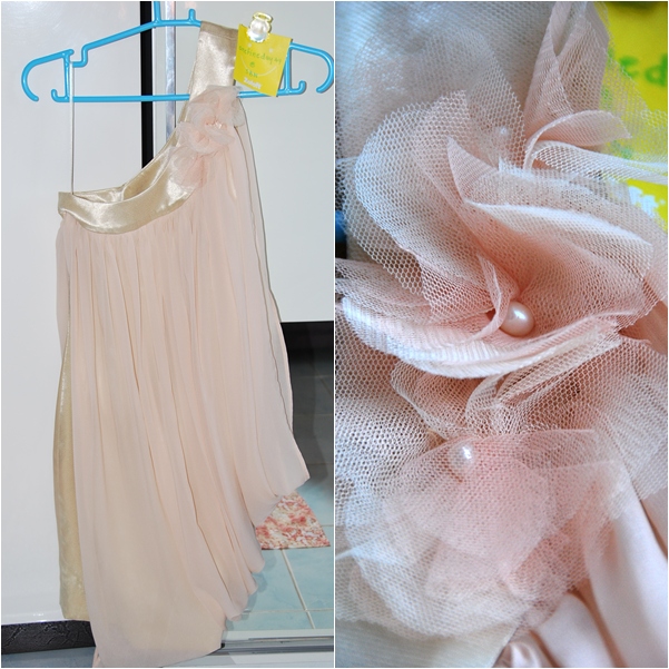 เดรสบ่าเดียวดอกไม้เกสรเป็นมุก