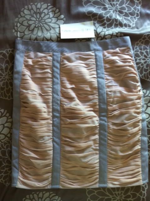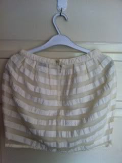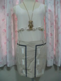 DISAYA SKIRT เป็นผ้าสีครีมเหลือบทองอ่อนๆค่ะ sz.US4 สภาพดีมากเหมือนใหม่ค่ะ (ตัวนี้ป้ายตัดนิดนึงค่ะ) ขาย 1800 >> Sale 1500!!