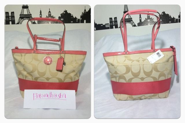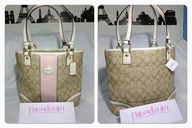 (พร้อมส่ง)กระเป๋า COACH signature stripe tote #19046