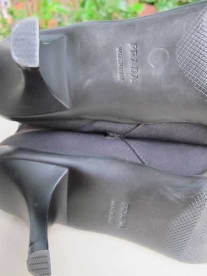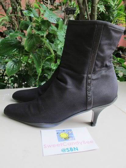 รองเท้า Boots Prada เป็นบู๊ตสั้น สีดำสนิท ตัวรองเท้าเป็นผ้าสแปนเด็กยืดๆใส่สบาย หน้าเท้ากว้างไม่มีปัญหา นิ๊ม นิ่มค่ะ ด้านในเป็นหนังแท้สีดำ ด้านนอกตัวผ้าไม่มีรอยเปลื้อนอะไรหนักๆเลยค่ะสะอาดสวยงาม ไซส์ 37 เท้ายาว 23.5 cm เหมาะกับสาวๆ ไซส์ 36 or 6us ส้นสูงเล็กน้อยนิ้วครึ่ง มือสองสภาพดีนะคะ น้ำหนักเบามากมายสไตล์ป้าดา พื้นกับส้นเป็นยางสึกเล็กน้อยใส่ได้อีกนานแสนนาน ใครมีแพลนเที่ยวต่างประเทศไม่น่าพลาดนะคะ ขาย 4700 บาทค่ะ