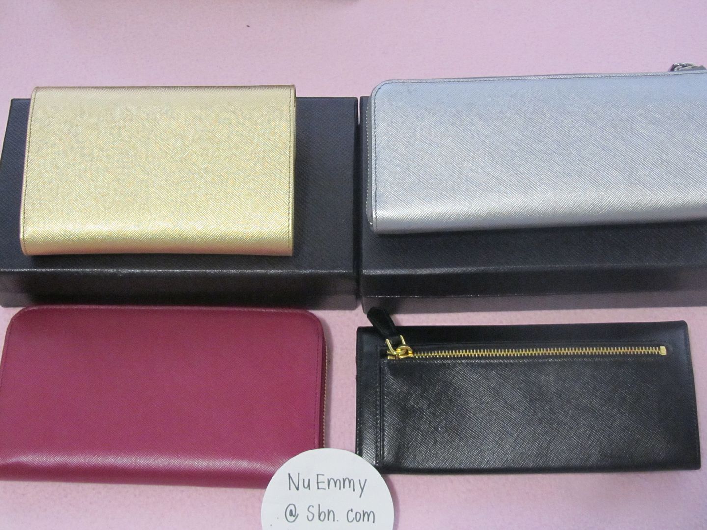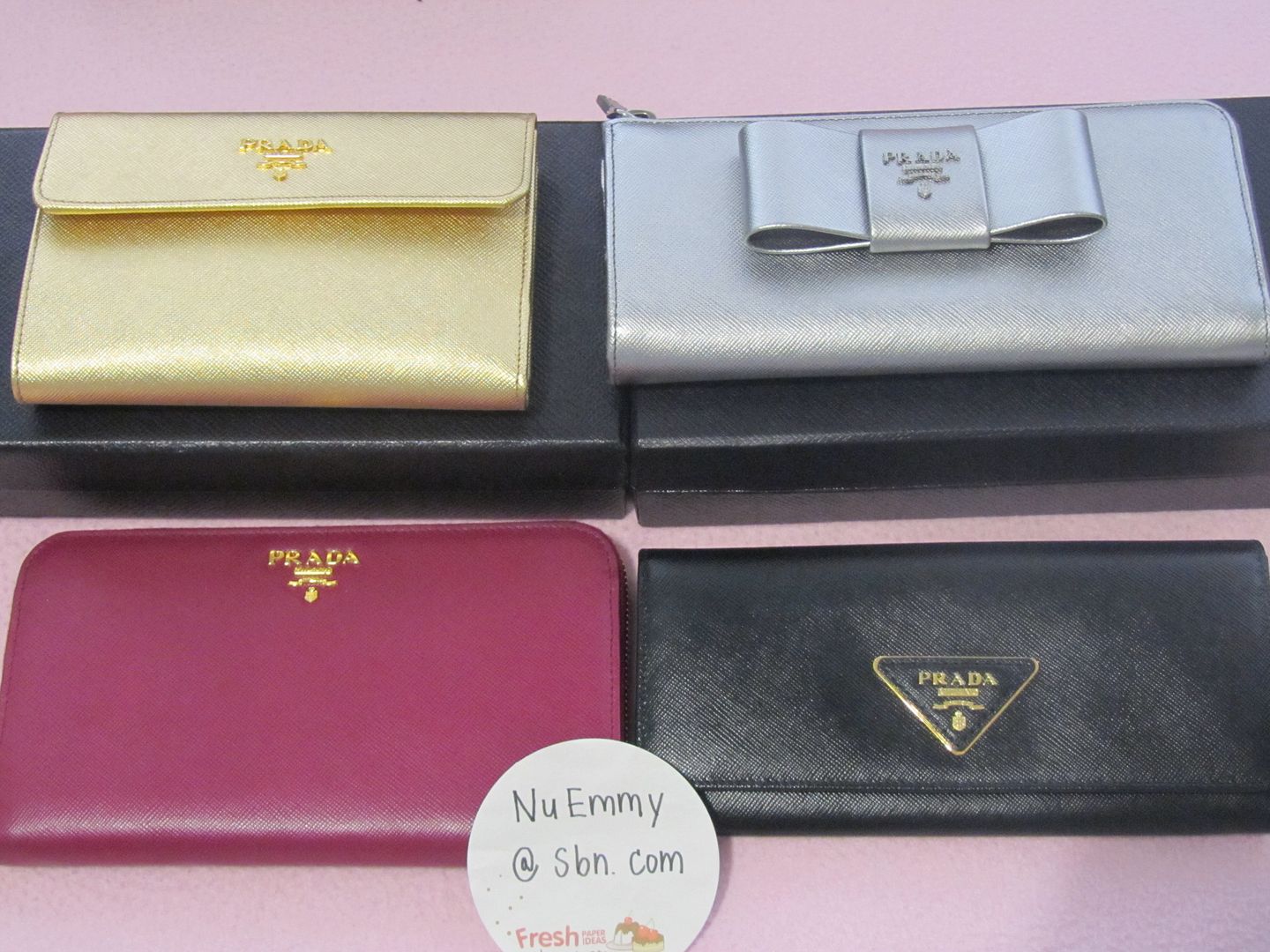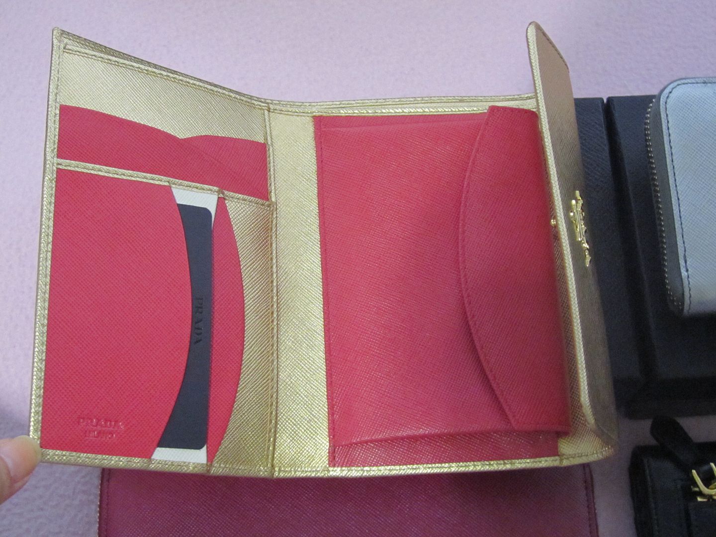 [SIZE="5"]New Prada Insolite Long Wallet สีน้ำเงินเข้ม และ สีชมพูแดง ใบใหญ่ สวยสุดๆ แต่มีตำหนิเป็นรอยขีดๆ สีเฟด นิดหน่อยตามรูป sale ไปเลย มีกล่องกับการ์ดพลาสติกค่ะ