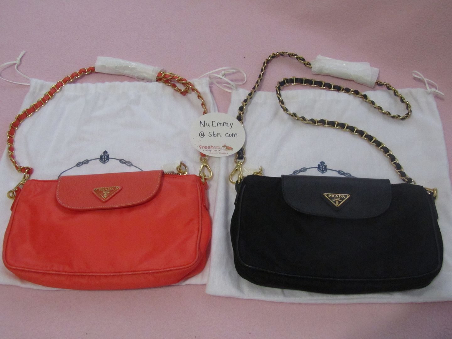 [SIZE="5"]New Prada mini สายโซ่ทอง ของใหม่ เหลือสีส้มอมชมพู มีการ์ดกับถุงผ้าค่ะ