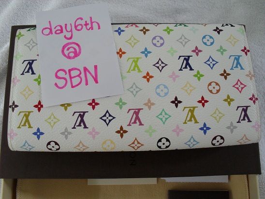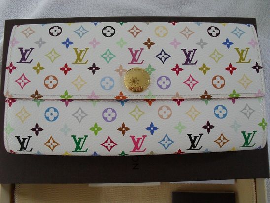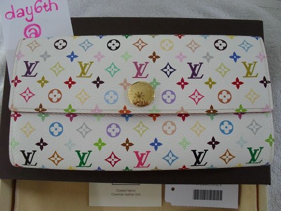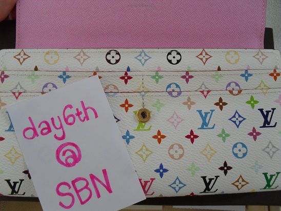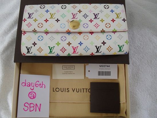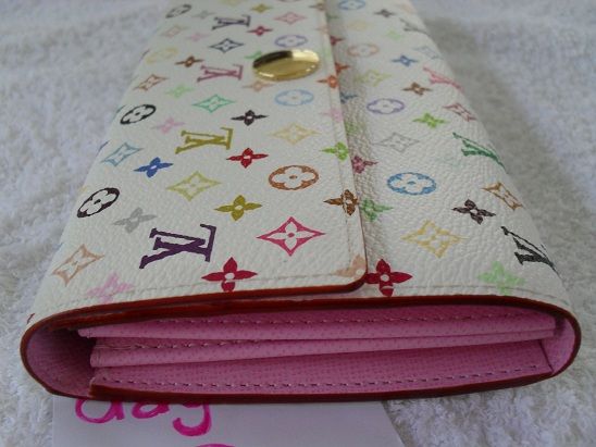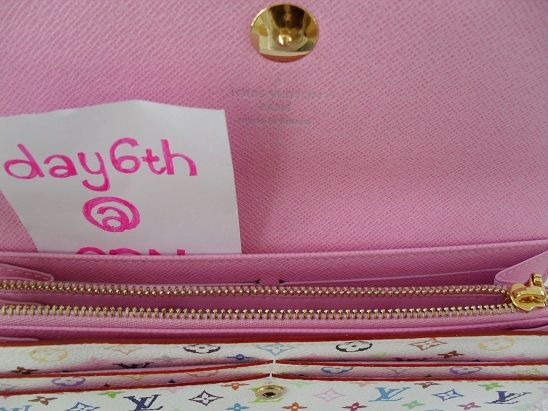 LOUIS VUITTON Monogram Multicolor (White) SARAH Wallet สีชมพูอ่อน (LITCHI)